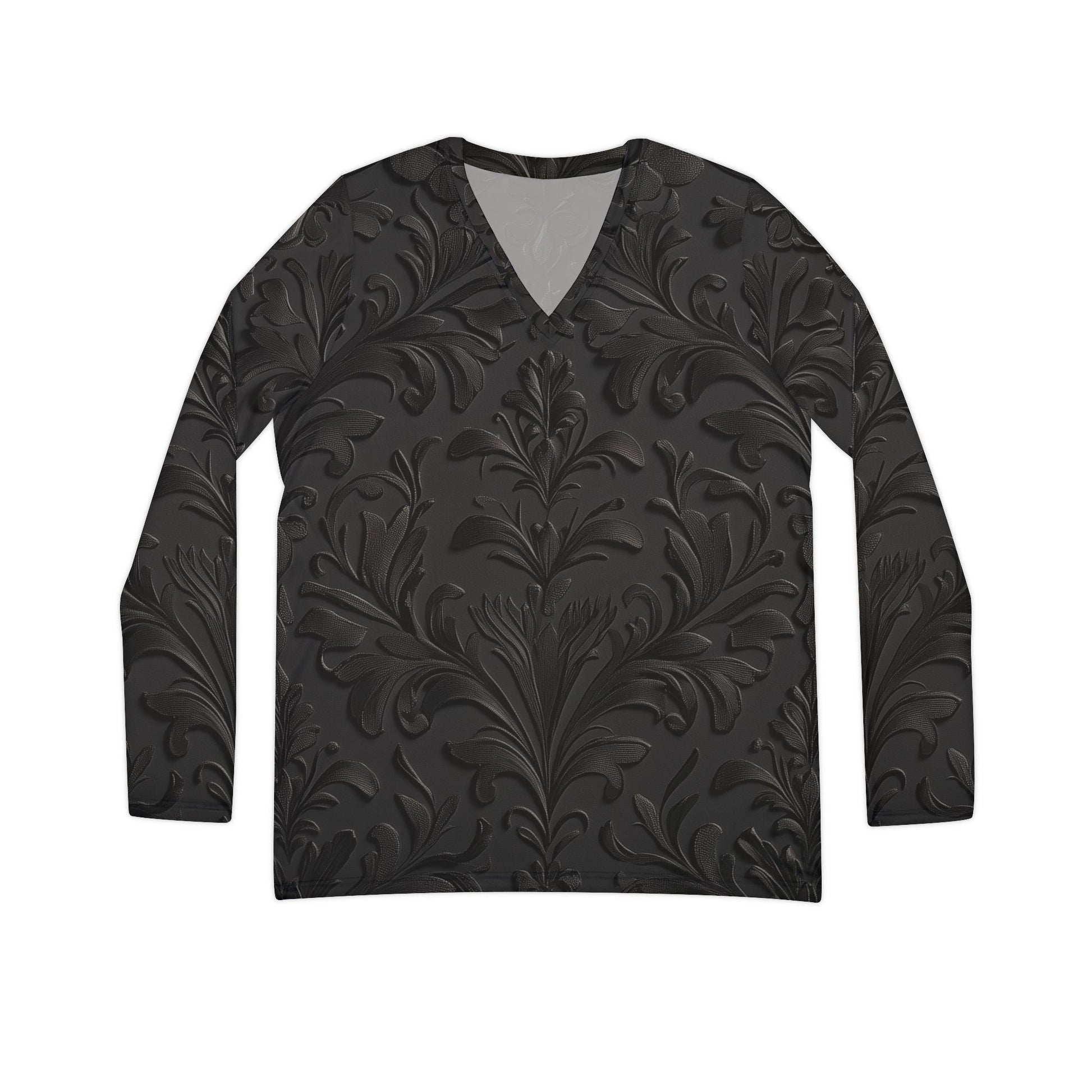Damask Print Long Sleeve V-neck Shirt