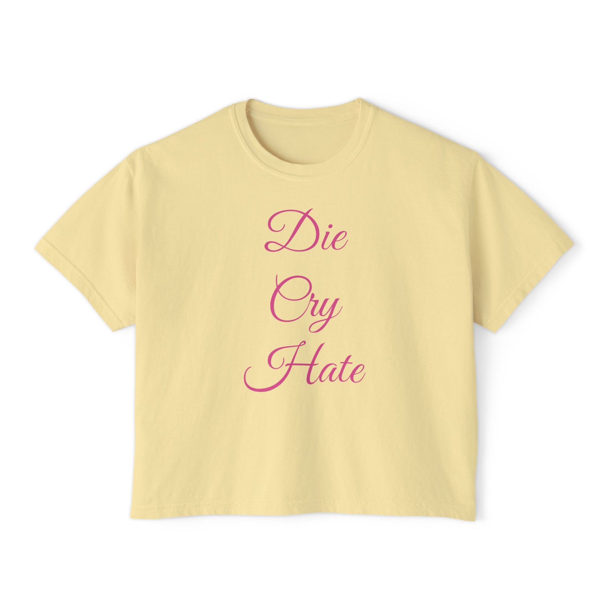 Lightweight and lived-in, this boxy tee carries a quiet, rebellious energy. The cropped, square silhouette lets it layer easily over high-waist jeans or a slip dress. Soft yet substantial ring-spun cotton and pigment-dyed fabrics feel broken-in from the first wear, and the vintage-faded print brings a feminine edge with its delicate script. Wear it when you want clothes that speak with understatement — afternoons at cafés, late-night playlists, or city walks where you prefer attitude over noise.