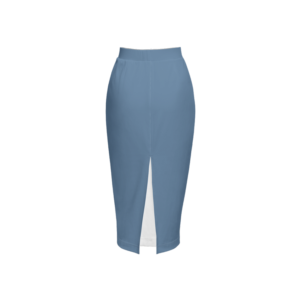 Dusty Pastel Blue Back Split Pencil Skirt (Heavy Knit)