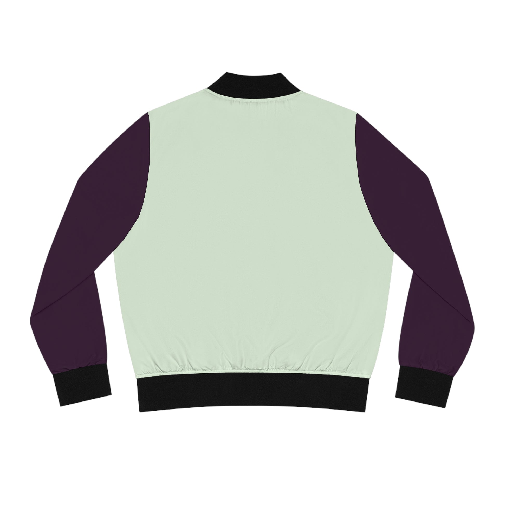 Lightweight bomber with a clean, modern palette — mint body paired with deep plum sleeves and classic black trims. The matte copper zipper and ribbed stand collar give it a subtle edge while the slanted hand pockets keep things practical. Wear it on crisp mornings when you want a layer that moves with you: roomy enough for a sweater underneath, but tailored enough to keep a neat silhouette. It feels casual and considered, the kind of jacket you grab for neighborhood walks, coffee runs, and evenings at a low-lit venue. The quick-drying polyester hold its shape through frequent wear and travel, so the jacket ages into a dependable go-to that still reads fresh and intentional.