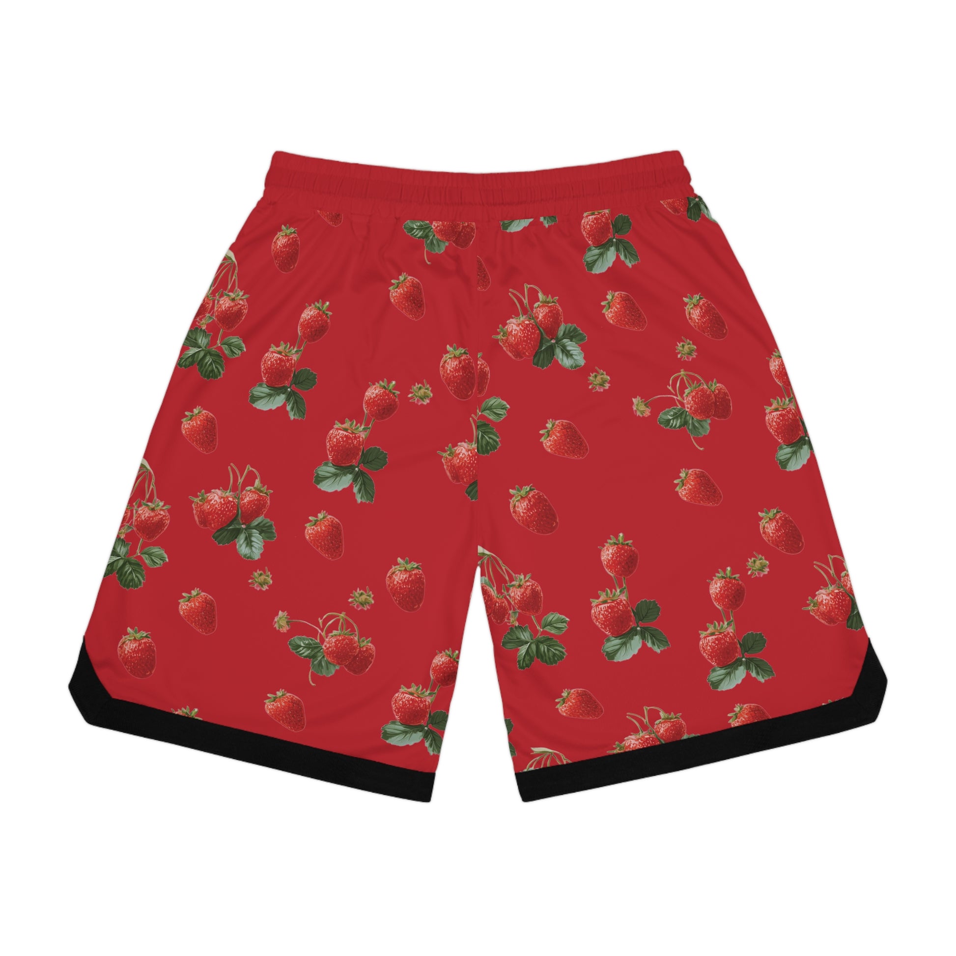 These bold basketball shorts bring a playful, vintage strawberry print to a classic athletic silhouette. Lightweight, quick-drying polyester keeps movement effortless whether you’re practicing pick-up games or lounging on a sunny weekend. The elastic waistband and drawstring sit securely while ribbed-knit hems and black trim add structure and a subtle retro vibe. Two side-entry pockets hold small essentials without interrupting the print. Wear them for drills, streetball, or relaxed days when you want sporty comfort with a bright, unexpected pattern.