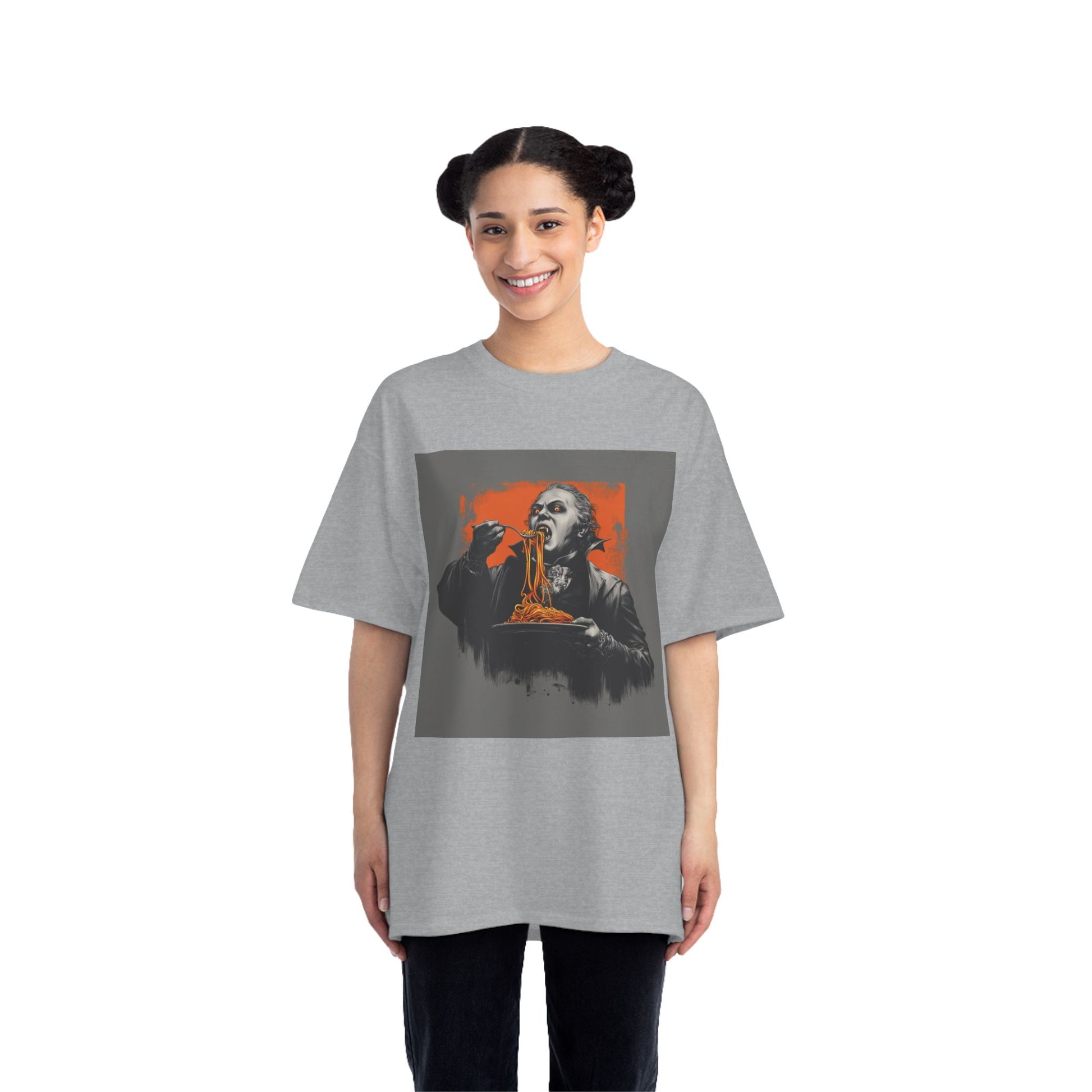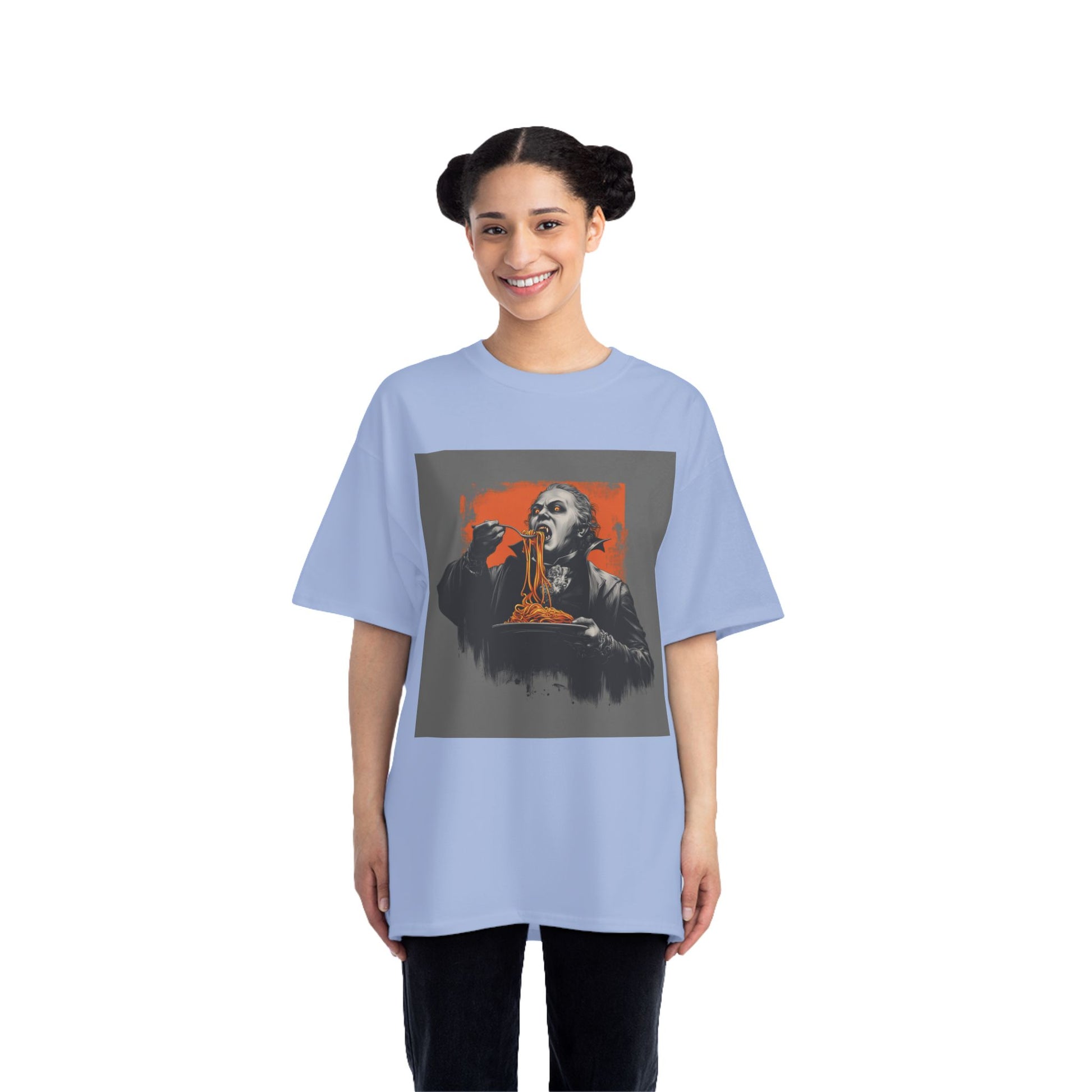 Vampire Eating Pasta Print T-Shirt